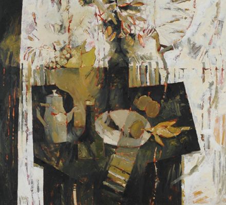 Kenneth Hood ( 1928 - 2002 ) was an Australian painter. Kenneth Hood s works have been auctioned off multiple times, with realized prices varying according to the size and medium of the artwork, for instance of 974.73 USD for STILL LIFE WITH FRUIT AND FLOWERS in 2004