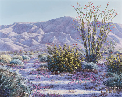 Kerry Kinman ( - ) is a painter. Kerry Kinman s works have been put up for auction numerous times, with realized prices varying from 550 USD for Coastal Redwoods in 2014 to 750 USD for Anza-Borrego Desert Blossoms in 2018 , based on the size and medium of the artwork.