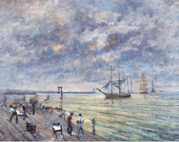 Klement Olsansky ( 1909 - 1963 ) was a Canadian painter. Klement Olsansky s works have been auctioned off multiple times, with realized prices varying according to the size and medium of the artwork, for instance of 1849.84 USD for DOCKWORKERS AWAITING SHIP in 2006