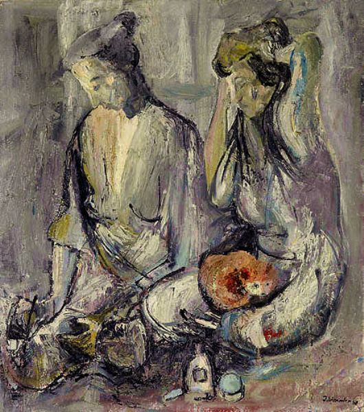 Köbi Lämmler ( 1934 - 1989 ) was a Swedish painter. Köbi Lämmler s works have been auctioned off multiple times, with realized prices varying according to the size and medium of the artwork, for instance of 1505.36 USD for Zwei auf dem Boden sitzende Frauen mit Katze in 2009