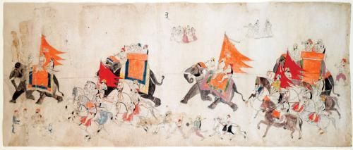Kotah ( 1827 - 1865 ) was a Indian painter. Kotah s works have been put up for auction numerous times, with realized prices surpassing estimated prices, varying from 7648.18 USD for A THUNDEROUS TRYST in 2006 to 22944.55 USD for A PROCESSIONAL SCENE in 2006 , based on the size and medium of the artwork.