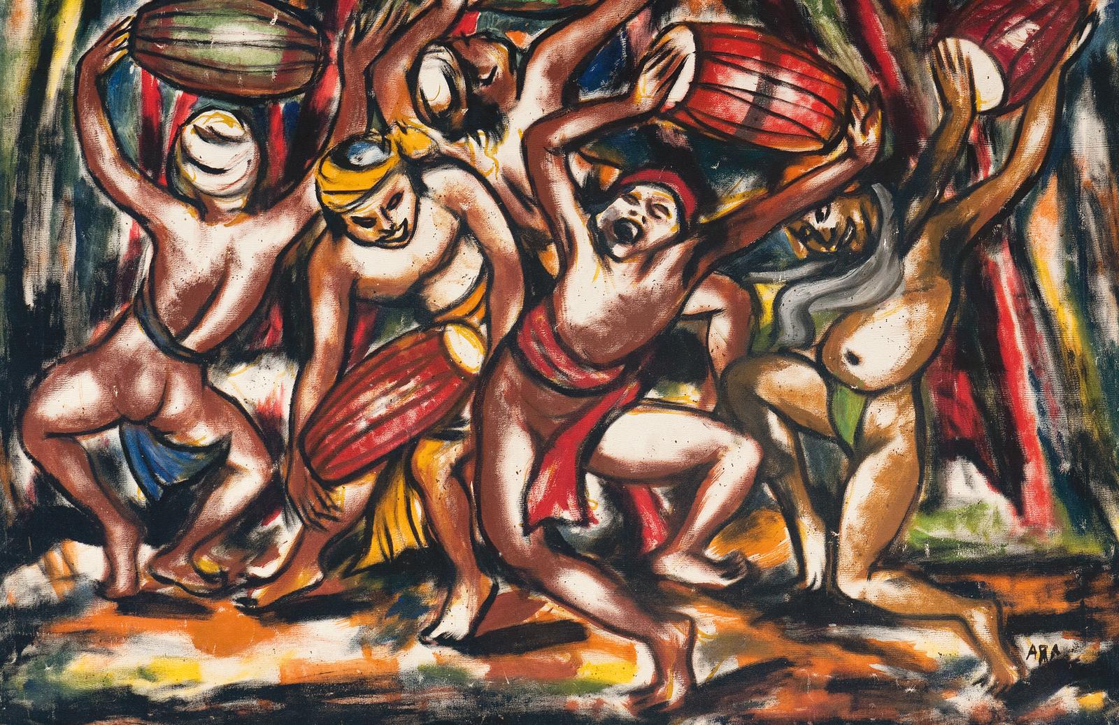 KRISHNAJI HOWLAJI ARA ( 1914 - 1985 ) was an Indian Modern and Contemporary painter who was a member of the revolutionary Progressive Artist's Group. KRISHNAJI HOWLAJI ARA s works have been put up for auction numerous times, with realized prices greatly surpassing estimated prices, varying from 8189.73 USD for NUDE in 2005 to a remarkable record 1061249.24 USD for Still Life in 2014 , based on t