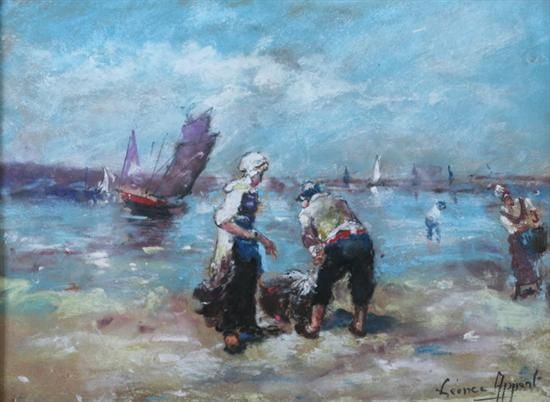 Léonce Appert ( 1800 - ) is a French painter. Léonce Appert s works have been put up for auction numerous times, with realized prices varying from 577.37 USD for Les ramasseurs de crevettes in 2009 to 825 USD for LES P√äCHEURS in 2010 , based on the size and medium of the artwork.