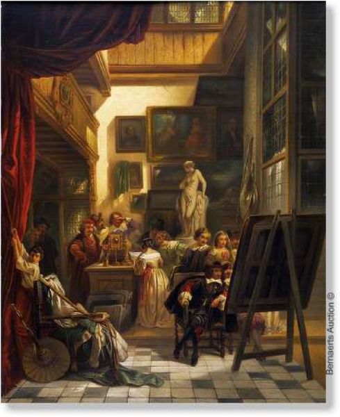 Lodewijk Jan Petrus Toutenel ( 1819 - 1883 ) was a Belgian painter. Lodewijk Jan Petrus Toutenel s works have been auctioned off multiple times, with realized prices varying according to the size and medium of the artwork, for instance of 6355.93 USD for Burgemeester Six aan het atelier van Rembrandt: in the atelier in 2006