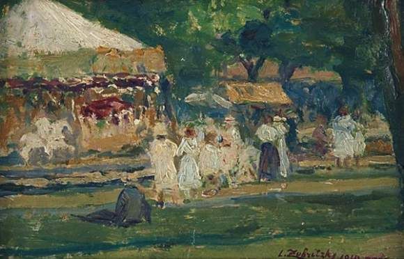 Lorand Zubritzky ( 1869 - ) is a Hungarian painter. Lorand Zubritzky s works have been put up for auction numerous times, with realized prices varying from 736.94 USD for Attelage au bord du lac in 2006 to 830.97 USD for La fête champêtre in 2009 , based on the size and medium of the artwork.