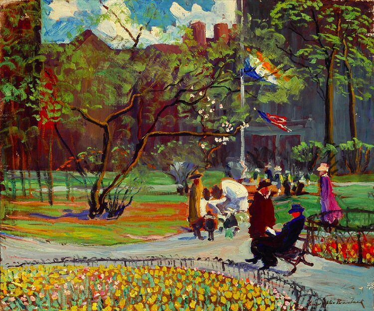 Louise Upton Brumback ( 1872 - 1929 ) was an American painter. Louise Upton Brumback s works have been put up for auction numerous times, with realized prices surpassing estimated prices, varying from 800 USD for Floral Still Life in 2004 to 17775 USD for May Day, Boston in 2006 , based on the size and medium of the artwork.