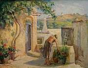 Loukas Geralis ( 1875 - 1958 ) was a Greek painter. Loukas Geralis s works have been put up for auction numerous times, with realized prices surpassing estimated prices, varying from 4976.01 USD for CELEBRATION UNDER TREES in 2003 to 5829.33 USD for THE FIRST OF MAY in 2004 , based on the size and medium of the artwork.
