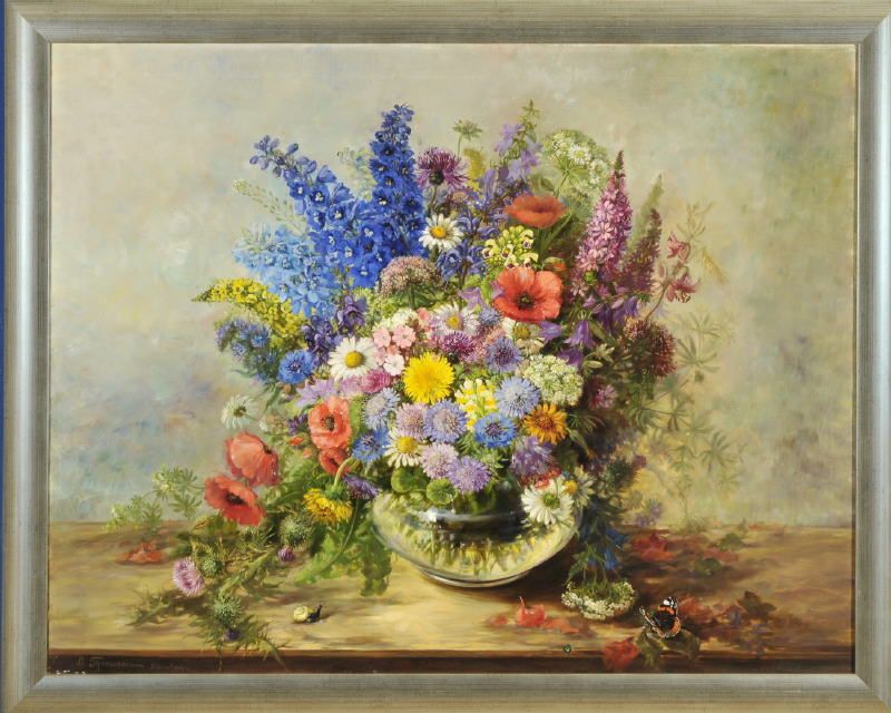 Luise Thomassin ( 1800 - 1900 ) was a German painter. Luise Thomassin s works have been auctioned off multiple times, with realized prices varying according to the size and medium of the artwork, for instance of 1136.36 USD for Blumenstilleben mit Astern, Mimosen, Disteln und Beeren in einem Kupfertopf in 2004