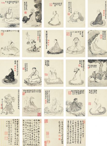 Luo Ping ( 1733 - 1799 ) was a Chinese painter of the Qing Dynasty. He painted people, Buddhist images, plum with bamboo, flowers, and scenery paintings. Luo Ping s works have been put up for auction numerous times, with realized prices surpassing estimated prices, varying from 59478.42 USD for Boating in 2006 to a remarkable record 2129314.18 USD for EIGHTEEN ROHANS in 2013 , based on the size