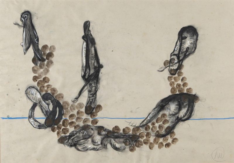 Lupertz Markus ( 1941 - ) is a German painter. Lupertz Markus s works have been put up for auction numerous times, with realized prices surpassing estimated prices, varying from 6250 USD for Composition in 2014 to 16250 USD for Mit Gabel und Messer zur Eule gewendet (from the series Alice im Wunderland) in 2014 , based on the size and medium of the artwork.