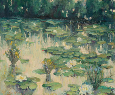 MARIA DEL CARMEN CALVO ( 1900 - ) is a painter. MARIA DEL CARMEN CALVO s works have been auctioned off multiple times, with realized prices varying according to the size and medium of the artwork, for instance of 4375 USD for Water Lilies (Shades of Green) in 2018