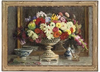 Marthe MOISSET ( - ) is a painter. Marthe MOISSET s works have been auctioned off multiple times, with realized prices varying according to the size and medium of the artwork, for instance of 559.23 USD for Carnations, roses, daisies and gladiolus in a vase before a mirror in 2008