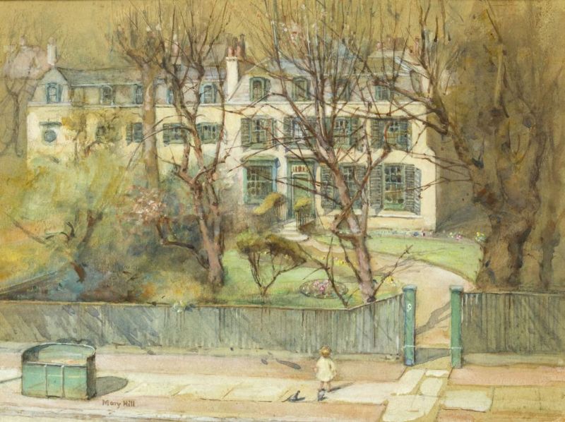 Mary Hill ( - ) is an American painter. Mary Hill s works have been put up for auction numerous times, with realized prices varying from 50 USD for BEACH SHANTY in 2006 to 256.12 USD for THE OLD WHITE BEAR INN; FEEDING THE PIGEONS; STREET SCENE; ROOFTOPS; IN A MONASTERY GARDEN in 2009 , based on the size and medium of the artwork.