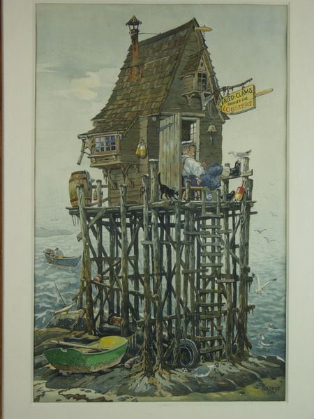 Maurice Day ( 1892 - 1983 ) was an American painter. Maurice Day s works have been put up for auction numerous times, with realized prices surpassing estimated prices, varying from 160 USD for Three piece art lot in 2004 to 2500 USD for OLD SALT OUTSIDE LOBSTER HOUSE UP ON STILTS STRANDED AT LOW TIDE in 2006 , based on the size and medium of the artwork.
