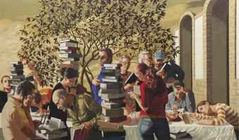 Mehrdad Mohebali ( 1960 - ) is an Iranian painter. Mehrdad Mohebali s works have been put up for auction numerous times, with realized prices surpassing estimated prices, varying from 21250 USD for Yellow Cake Syndrome in 2011 to 31250 USD for The Last Supper I in 2011 , based on the size and medium of the artwork.