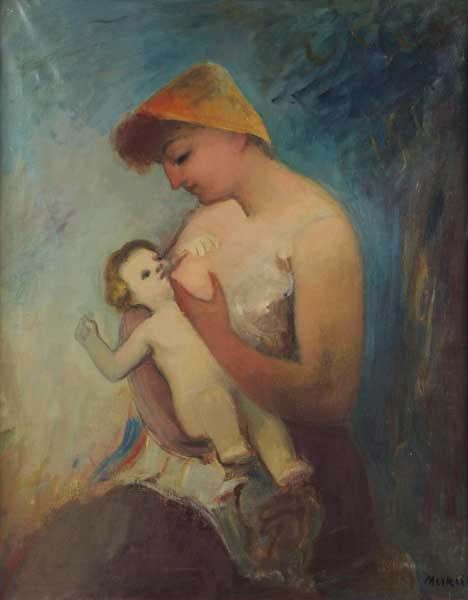 Merkel ( 1900 - ) is a painter. Merkel s works have been put up for auction numerous times, with realized prices surpassing estimated prices, varying from 33.03 USD for Partie in den Alpen in 2005 to 9765.63 USD for Maternité in 2012 , based on the size and medium of the artwork.
