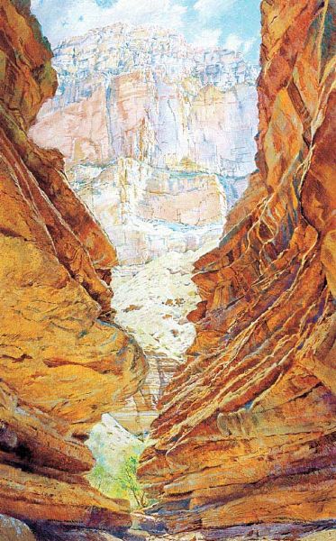 Merrill Dean Mahaffey ( 1937 - ) is an American painter. Merrill Dean Mahaffey s works have been put up for auction numerous times, with realized prices surpassing estimated prices, varying from 2000 USD for DYNASTIC CORNER, LAKE POWELL in 2008 to 4500 USD for La Sal Winter, Fisher Towers in 2014 , based on the size and medium of the artwork.