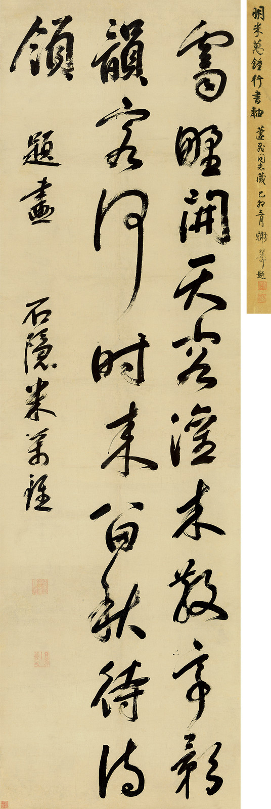 Mi Wanzhong ( 1570 - 1628 ) was a Chinese painter. Mi Wanzhong s works have been auctioned off multiple times, with realized prices varying according to the size and medium of the artwork, for instance of 10000 USD for POEM IN RUNNING SCRIPT in 2015