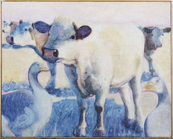 Michael Godey ( 1949 - ) is a painter. Michael Godey s works have been put up for auction numerous times, with realized prices surpassing estimated prices, varying from 188 USD for Piggy Toes II (A dog) in 2010 to 1875 USD for Untitled (Cows and geese) in 2010 , based on the size and medium of the artwork.