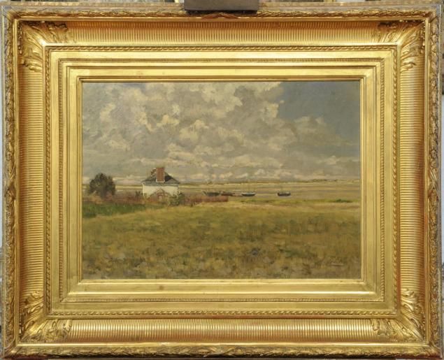 Michel Eudes De L'hay ( 1849 - 1900 ) was a painter. Michel Eudes De L'hay s works have been auctioned off multiple times, with realized prices varying according to the size and medium of the artwork, for instance of 298.63 USD for River Scene with Moored Boats in 2015