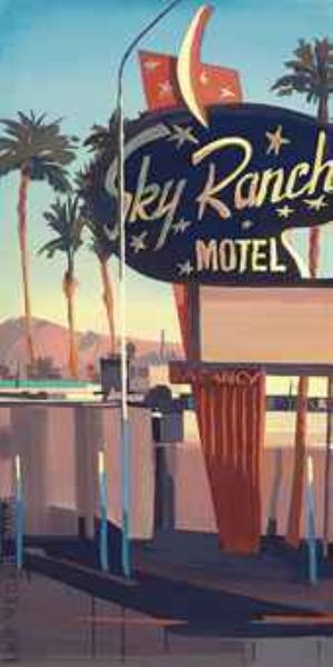 Michelle Auboiron ( 1900 - ) is a French painter. Michelle Auboiron s works have been auctioned off multiple times, with realized prices varying according to the size and medium of the artwork, for instance of 620.27 USD for A set of five Las Vegas motels: Sky Ranch Motel; Strip 91 Motel; Safari Motel; Roulette Motel; and Fun City, Las Vegas in 2011