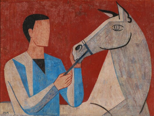 Mogens Magnussen ( 1921 - ) is a Danish painter. Mogens Magnussen s works have been put up for auction numerous times, with realized prices surpassing estimated prices, varying from 140.16 USD for Stilleben in 2005 to 557.71 USD for Man and horse in 2017 , based on the size and medium of the artwork.
