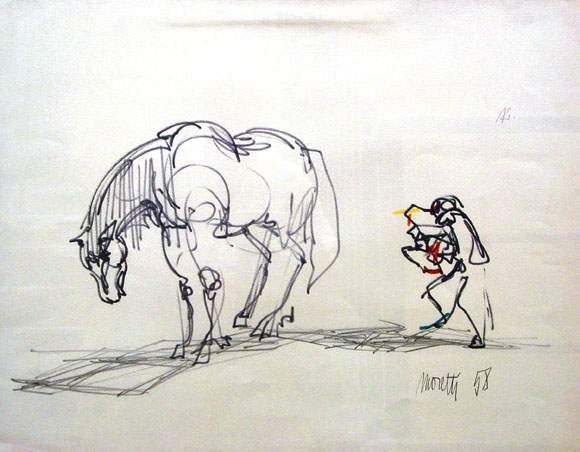 Moretti ( - ) is a painter. Moretti s works have been put up for auction numerous times, with realized prices varying from 219.24 USD for Figura in 2004 to 345.45 USD for Cheval in 2006 , based on the size and medium of the artwork.