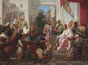 Moritz Daniel Oppenheim ( 1800 - 1882 ) was a painter. Moritz Daniel Oppenheim s works have been put up for auction numerous times, with realized prices surpassing estimated prices, varying from 647.59 USD for En ung pige frister med et glas vin. in 2004 to 28098.04 USD for A merciful king in 2012 , based on the size and medium of the artwork.