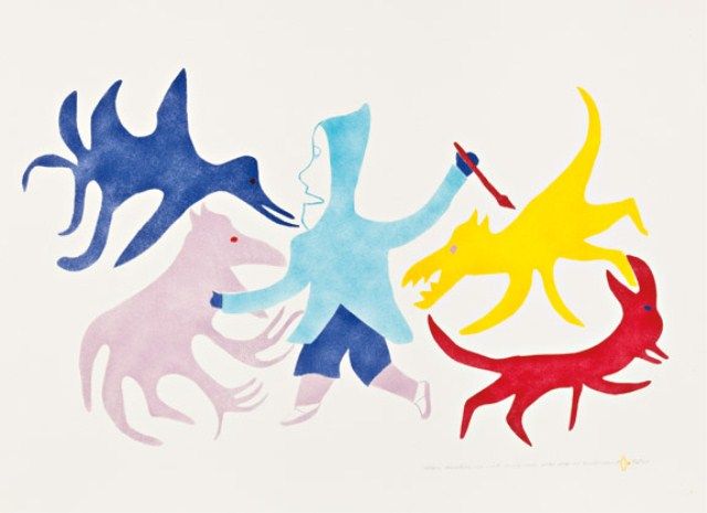 Myra Kukiiyaut ( 1929 - ) is a painter. Myra Kukiiyaut s works have been put up for auction numerous times, with realized prices varying from 231.27 USD for IRINALIUT in 2005 to 606.7 USD for SPIRITS FLYING TOGETHER in 2006 , based on the size and medium of the artwork.