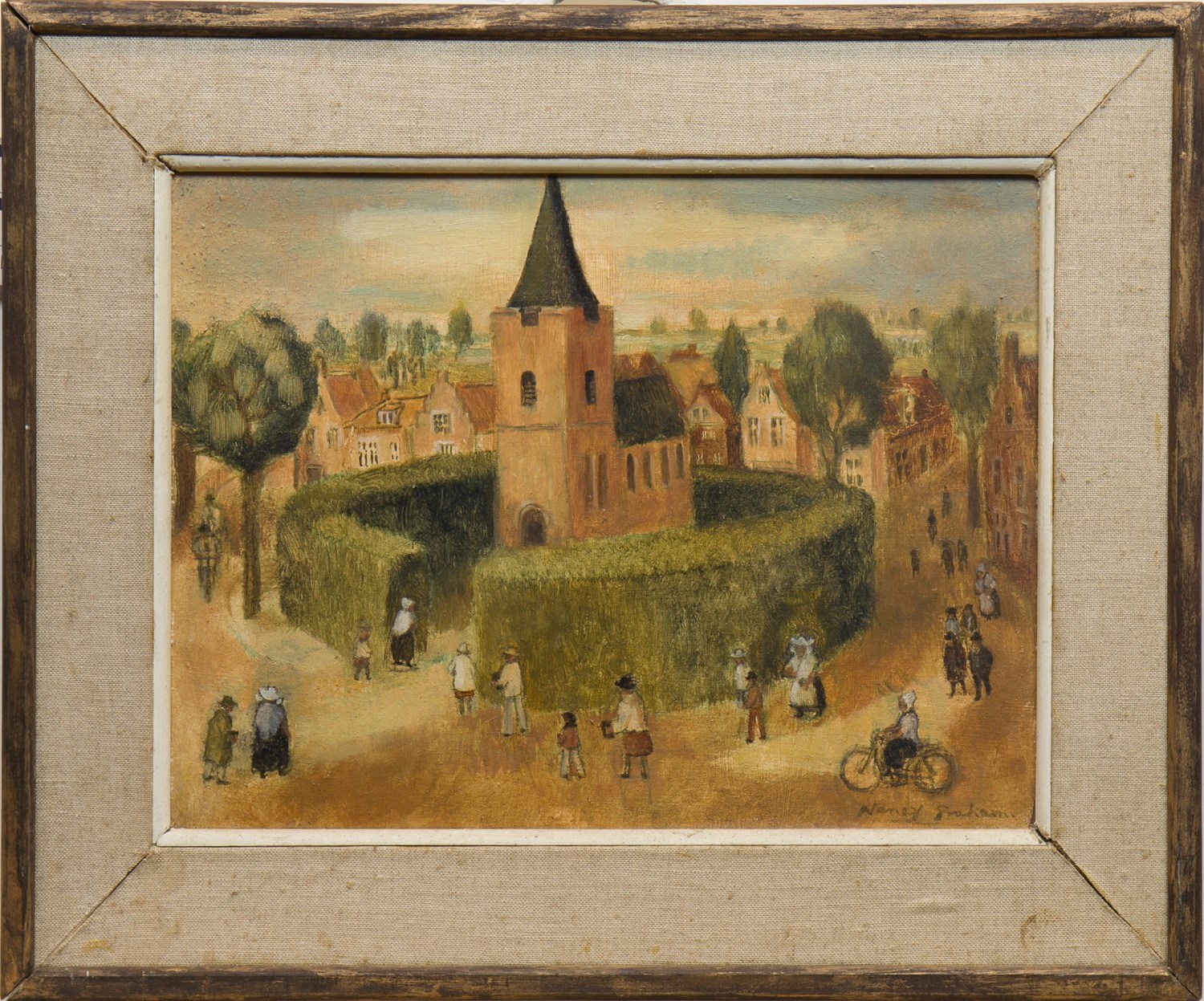 Nancy Graham ( 1900 - ) is a British painter. Nancy Graham s works have been auctioned off multiple times, with realized prices varying according to the size and medium of the artwork, for instance of 81.07 USD for Figures at a park gate in 2008