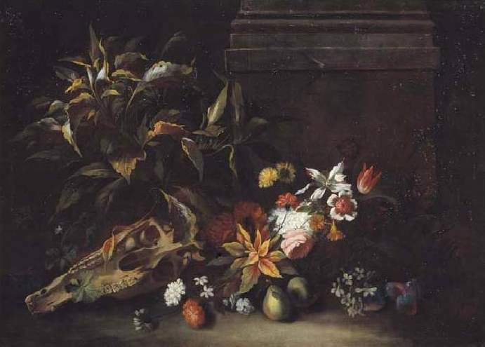 Nicola Van Houbraken ( 1660 - 1723 ) was an Italian painter. Nicola Van Houbraken s works have been put up for auction numerous times, with realized prices varying from 18836.33 USD for STILL LIFE WITH POTTED PLANTS AND ROSES, A DOG, A BASKET OF APPLES, FENNEL, AND A SEMI-PLUCKED ROOSTER, A BREAD ROLL ON A PLATE in 2005 to 33600 USD for A ceramic vase with roses, hortensias and other flowers in