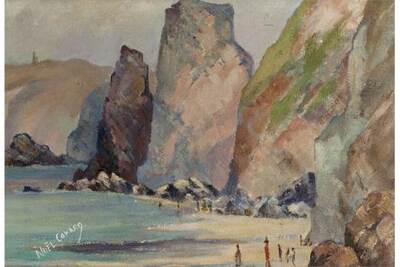 Noël Coward ( 1899 - 1973 ) was a British painter. Noël Coward s works have been put up for auction numerous times, with realized prices surpassing estimated prices, varying from 1492.83 USD for Portrait of a young woman in 2015 to 16172.37 USD for Palm trees in 2015 , based on the size and medium of the artwork.