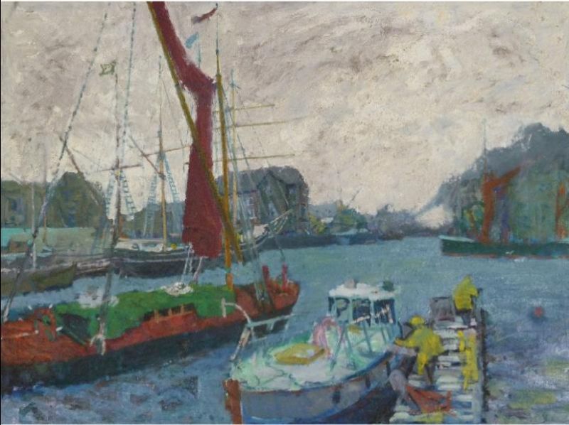 Norman Laycock ( 1900 - 1985 ) was a British painter. Norman Laycock s works have been put up for auction numerous times, with realized prices varying from 150.15 USD for Flowers by a window in 2012 to 375.38 USD for Harbour scene with moored sailing barges and other vessels in 2012 , based on the size and medium of the artwork.