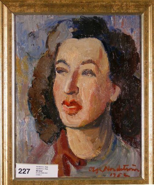 Olga Nordström ( 1902 - 1981 ) was a Finnish painter. Olga Nordström s works have been put up for auction numerous times, with realized prices surpassing estimated prices, varying from 77.8 USD for Unkown title in 2005 to 229.57 USD for kustlandskap in 2005 , based on the size and medium of the artwork.