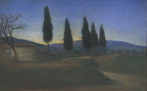 Orazio Toschi ( 1887 - 1972 ) was an Italian painter. Orazio Toschi s works have been put up for auction numerous times, with realized prices surpassing estimated prices, varying from 505.13 USD for DONNE DAVANTI AD UNA CHIESA in 2005 to 2187.74 USD for PAESAGGIO CON CIPRESSI in 2006 , based on the size and medium of the artwork.