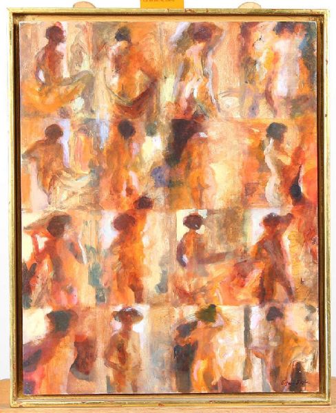 Örjan Sätre ( - ) is a painter. Örjan Sätre s works have been put up for auction numerous times, with realized prices surpassing estimated prices, varying from 425.06 USD for En kaka till, kanske in 2005 to 519.3 USD for Modell med skynke in 2006 , based on the size and medium of the artwork.