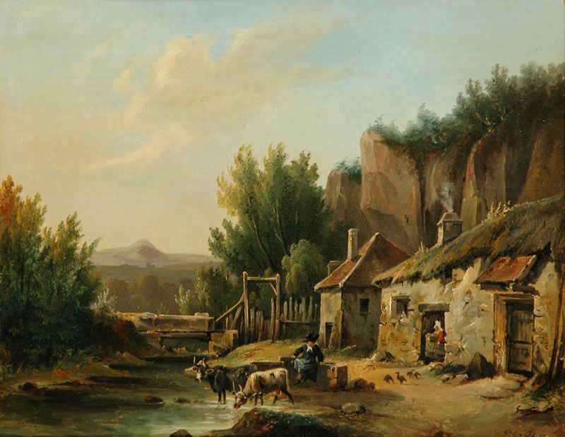P g Van Os ( 1776 - 1839 ) was a Dutch painter. P g Van Os s works have been auctioned off multiple times, with realized prices varying according to the size and medium of the artwork, for instance of 135.43 USD for Rivierlandschap met een huis en koeien in 2009