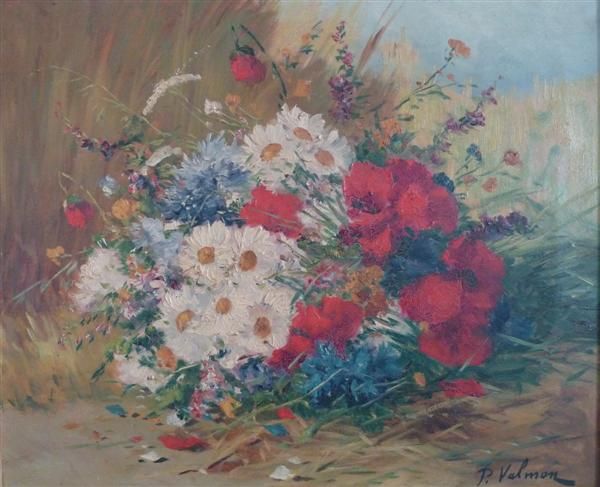 P Valmon ( 1800 - ) is a French painter. P Valmon s works have been auctioned off multiple times, with realized prices varying according to the size and medium of the artwork, for instance of 5743.19 USD for Gegenstücke: Frucht- und Blumenarrangement in 2004