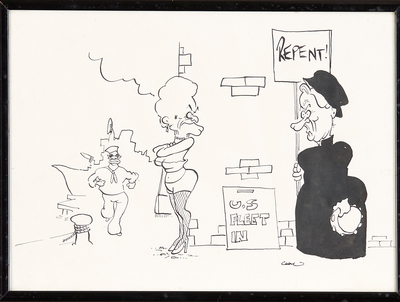 Patrick Cook ( 1949 - ) is a British painter. Patrick Cook s works have been auctioned off multiple times, with realized prices varying according to the size and medium of the artwork, for instance of 126.04 USD for Repent! in 2017