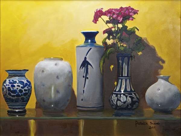 Patrick Marsh ( 1943 - ) is a painter. Patrick Marsh s works have been auctioned off multiple times, with realized prices varying according to the size and medium of the artwork, for instance of 777.54 USD for Five Pots on a Shelf in 2013