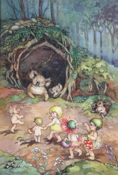 Peg Maltby ( 1899 - 1984 ) was an Australian painter. Peg Maltby s works have been put up for auction numerous times, with realized prices surpassing estimated prices, varying from 263.09 USD for Lady on Her Way to The Opera in 2005 to 10423.45 USD for Gumnut Babies meeting a Koala in 2006 , based on the size and medium of the artwork.