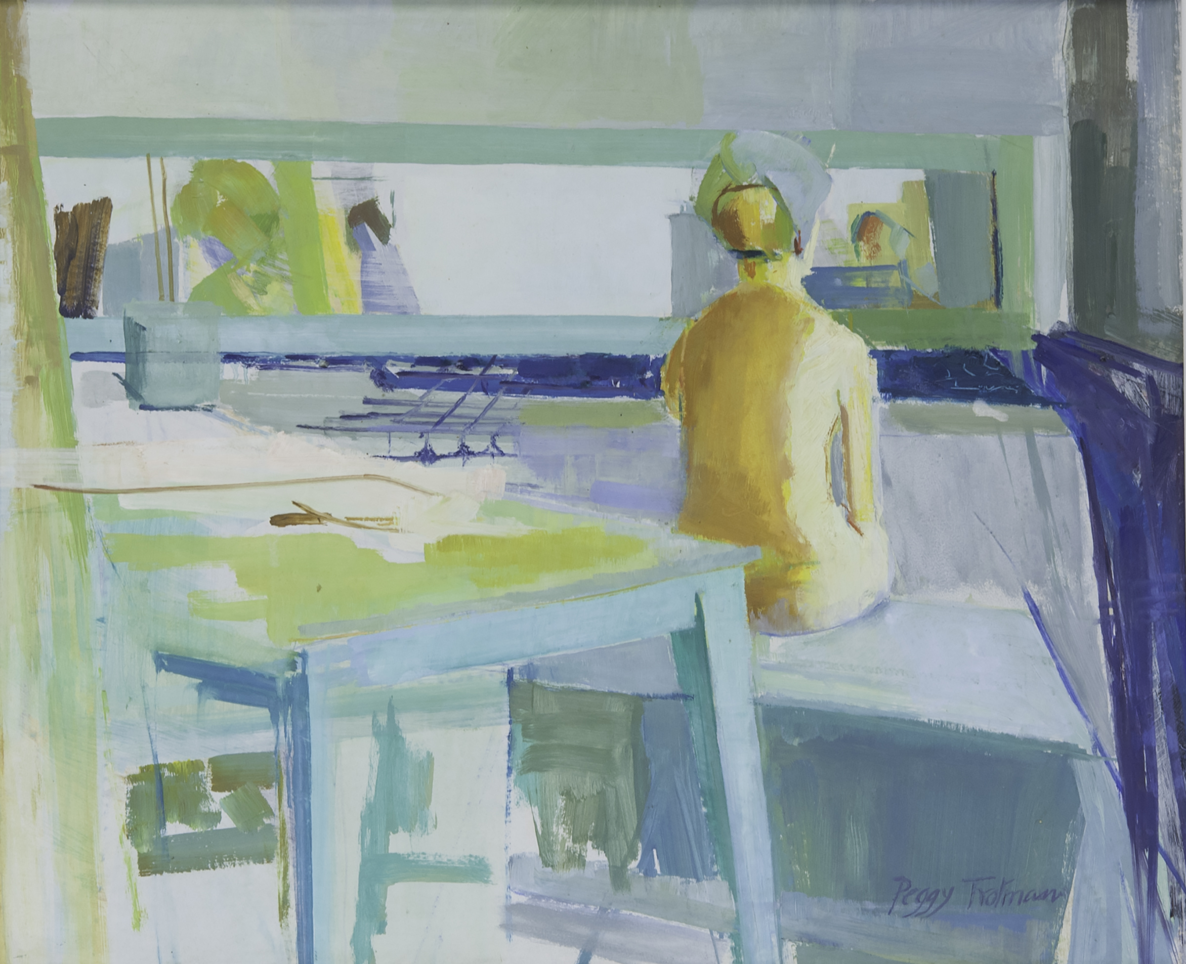Peggy Trotman ( 1915 - 1980 ) was a British painter. Peggy Trotman s works have been auctioned off multiple times, with realized prices varying according to the size and medium of the artwork, for instance of 63.3 USD for Interior with seated nude in 2016