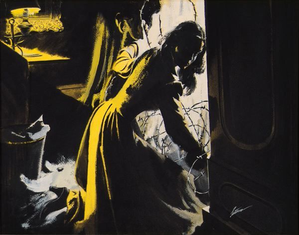 Perry Peterson ( 1908 - 1958 ) was an American painter. Perry Peterson s works have been auctioned off multiple times, with realized prices varying according to the size and medium of the artwork, for instance of 1200 USD for Woman stringing barbed wire in bedroom window in 2010