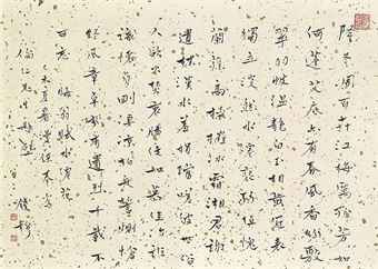 Qian Mu ( - ) is a painter. Qian Mu s works have been put up for auction numerous times, with realized prices surpassing estimated prices, varying from 2292 USD for LETTER TO CHENG GUANGYU in 2008 to 5000 USD for CALLIGRAPHY IN RUNNING SCRIPT in 2017 , based on the size and medium of the artwork.