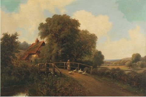 R Fenson ( - ) is a British painter. R Fenson s works have been put up for auction numerous times, with realized prices surpassing estimated prices, varying from 900 USD for Country landscape with cottage in 2005 to 1532.88 USD for GIRL LEADING GEESE BY A BOY FISHING FROM A BRIDGE in 2007 , based on the size and medium of the artwork.