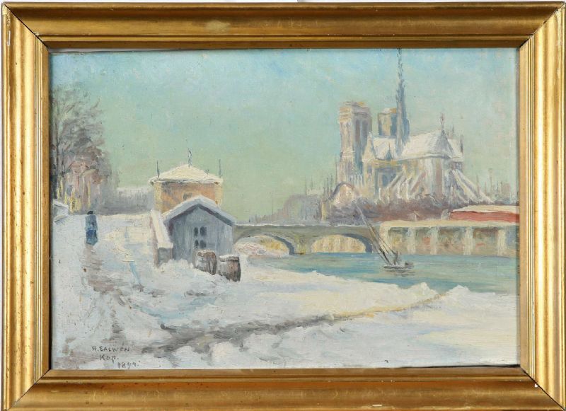 R Salwén ( 1900 - ) is a painter. R Salwén s works have been put up for auction numerous times, with realized prices varying from 89.12 USD for Bergsmanshytta i vinterlandskap in 2006 to 110.67 USD for solbadare in 2007 , based on the size and medium of the artwork.