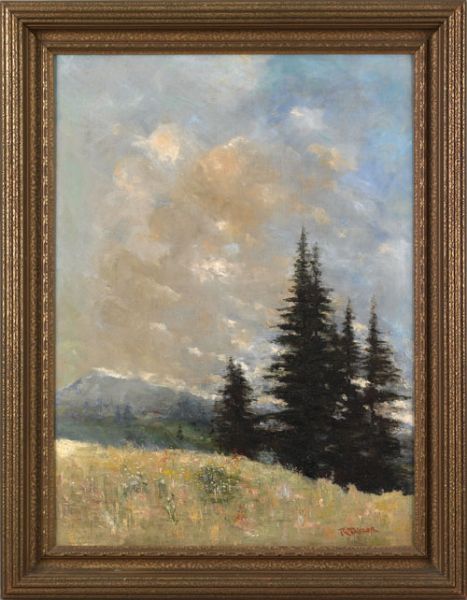 R Taylor ( 1870 - 1900 ) was a British painter. R Taylor s works have been put up for auction numerous times, with realized prices varying from 11.71 USD for Golfing on Minchampton Common: A Hazard on the Ladies' Course in 2006 to 761 USD for summer landscape with meadow of flowers and mountain in the background in 2006 , based on the size and medium of the artwork.