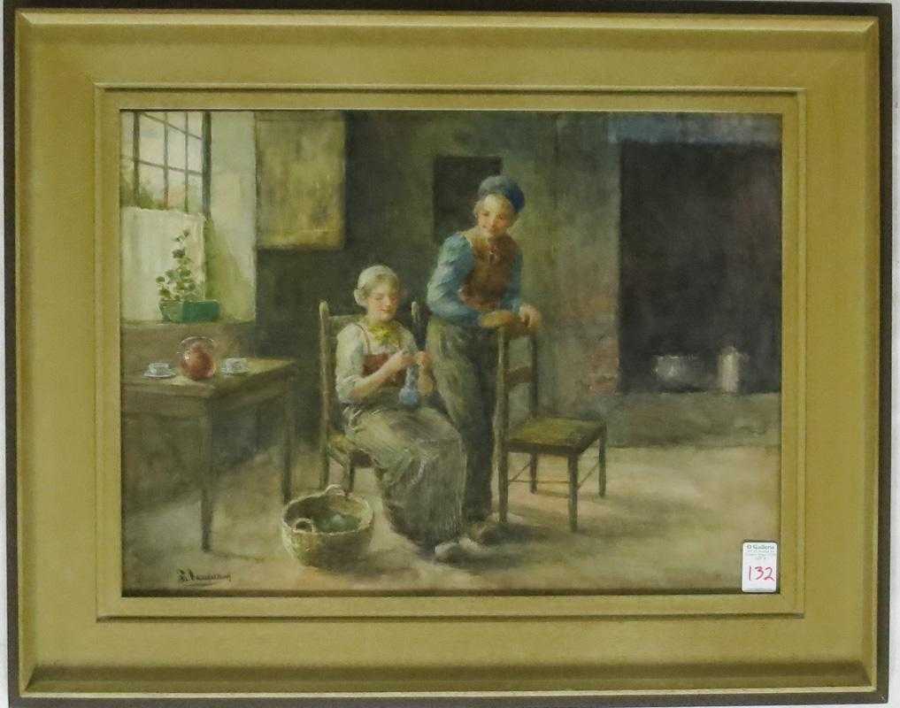 R VANDERHOOF ( - ) is a painter. R VANDERHOOF s works have been auctioned off multiple times, with realized prices varying according to the size and medium of the artwork, for instance of 120 USD for Dutch interior with a young girl knitting in 2016