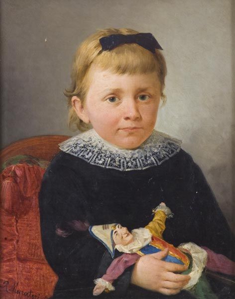 Raimondo Muratori ( 1841 - 1885 ) was a painter. Raimondo Muratori s works have been auctioned off multiple times, with realized prices varying according to the size and medium of the artwork, for instance of 1217.5 USD for RITRATTO DI BAMBINA CON PUPAZZO in 2008