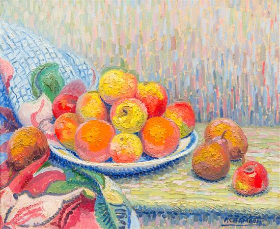 Reine Chambon ( 1888 - ) is a painter. Reine Chambon s works have been put up for auction numerous times, with realized prices varying from 96.23 USD for Nature morte au croissant et anémones in 2008 to 250 USD for Nature morete au pommes in 2016 , based on the size and medium of the artwork.